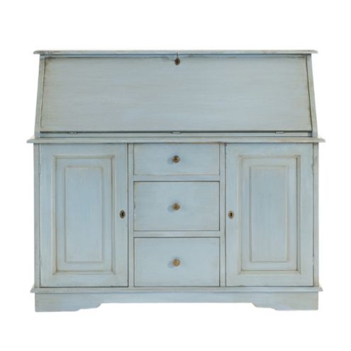 The solid beech wood frame has a curved scalloped ladder back and a wide cushioned seat that begs you to linger over your morning cappuccino. Drop-down desk front conceals a generous storage cubby two drawers and cord management so you can plug in your laptop. We purchased the Louis XVI Armoire and we love it.